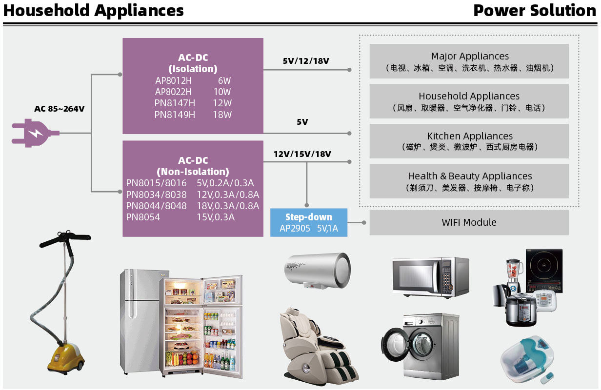 Poweron 是業內領先的(de)(de)家用電(dian)器電(dian)源管理方案的(de)(de)供應商。我們可以為(wei)您(nin)的(de)(de)生活(huo)家電(dian)提供1-24W非(fei)隔離(li)Buck/Boost、隔離(li)Flyback/PSR的(de)(de)一站式的(de)(de)完整AC/DC解決方案,使客戶的(de)(de)系(xi)統性能優秀、靈活(huo)可靠(kao),并具有成本競爭力(li)。
