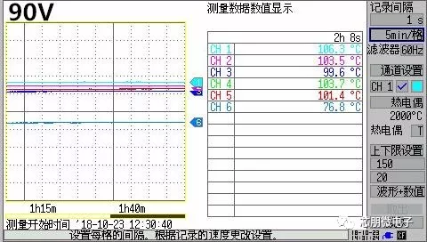 (溫度數據:CH1 PN8161;CH2 PN8307H;CH3 磁芯(xin);CH4 初級(ji)漆包線(xian);CH5 三層絕(jue)緣線(xian);CH6 外殼(ke))