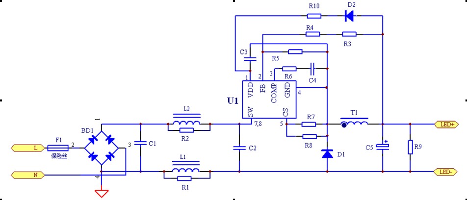 非隔離5~8W球泡燈單電感驅動過認證方案