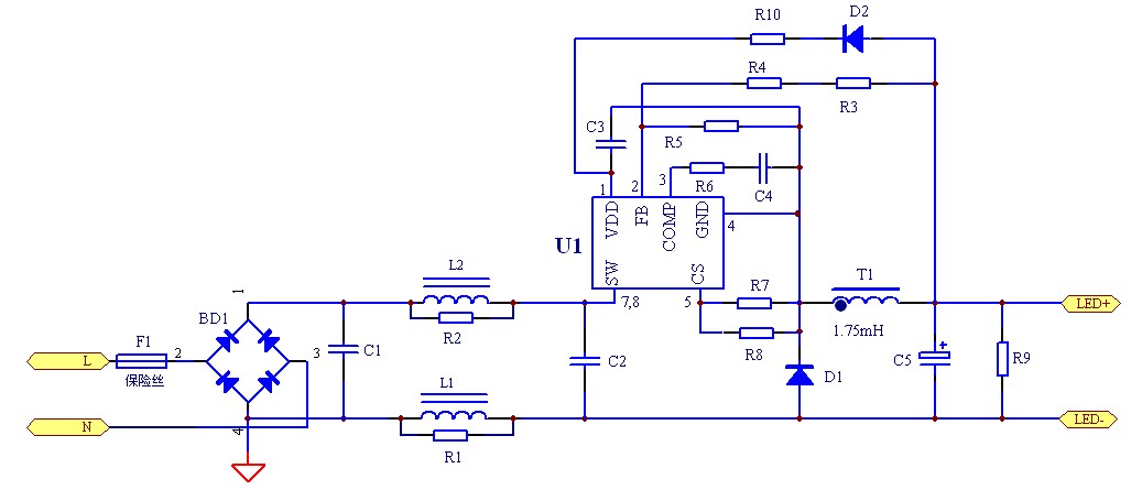 非隔離7~9W球泡燈單電感驅動過認證方案