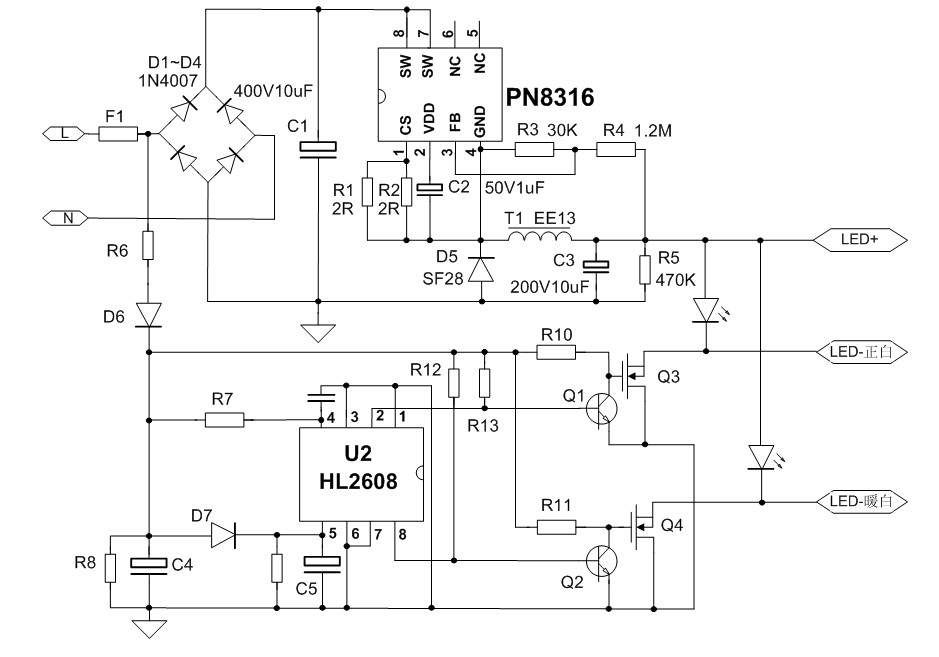 非隔離8~24W三段調色燈單電感驅動過認證方案