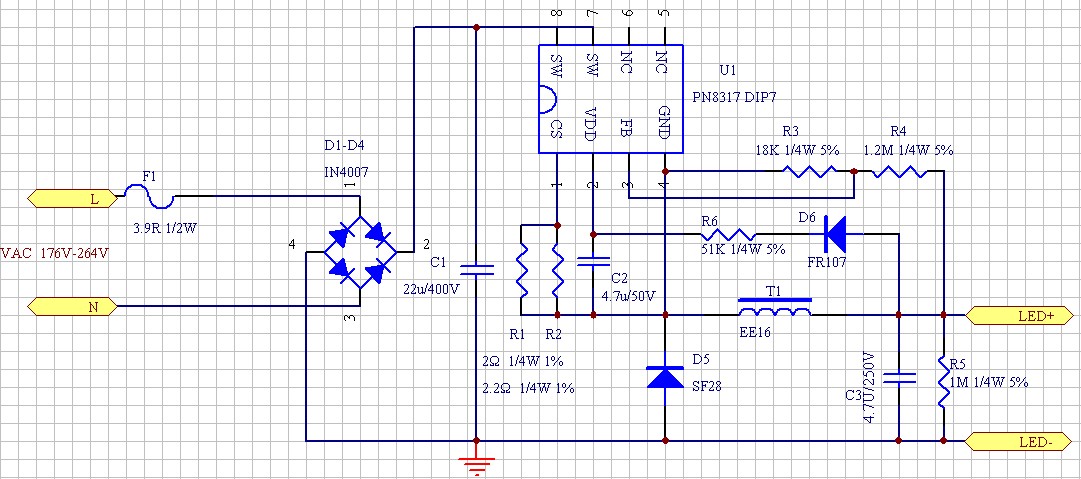 | 14 | U1 | IC | PN8317 | DIP-7 | 1 | ||