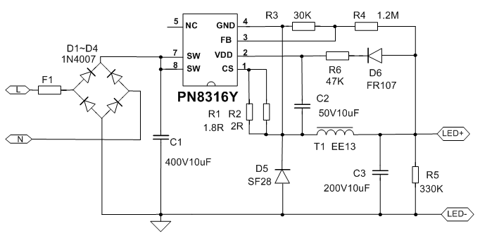 | 13 | U1 | IC | PN8316Y | DIP-7 | 1 |
