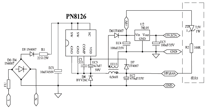 | 18 | U1 | IC | PN8126F | DIP-7 | 1 | ||