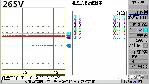 (溫度數據:CH1 PN8161;CH2 PN8307H;CH3 磁芯(xin);CH4 初級(ji)漆包線(xian);CH5 三層絕(jue)緣線(xian);CH6 外殼(ke))