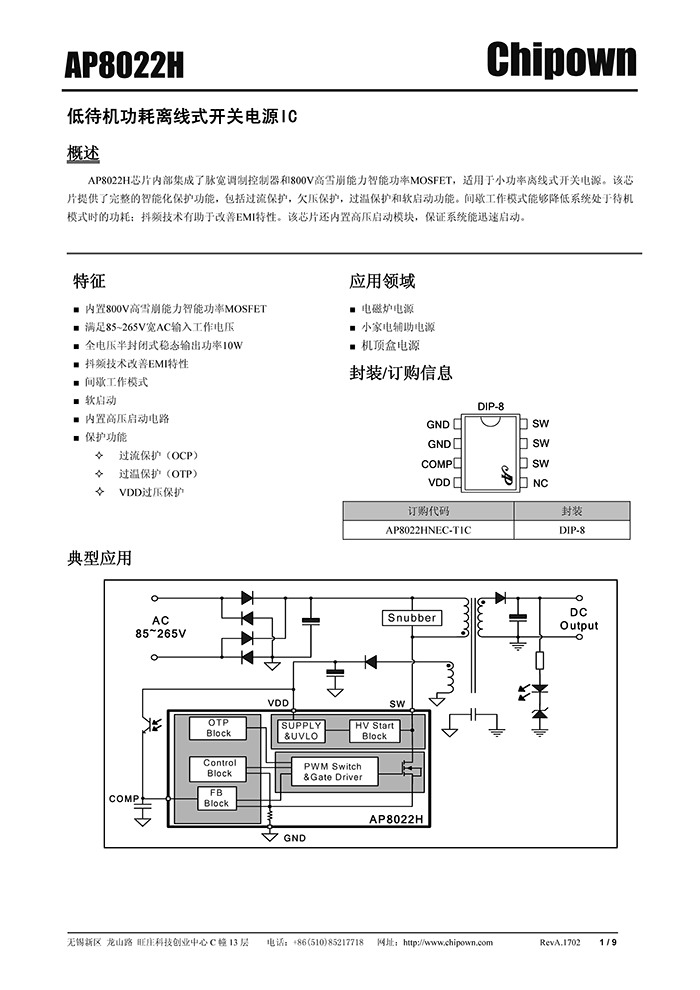 八款智能家電電源芯片及方案