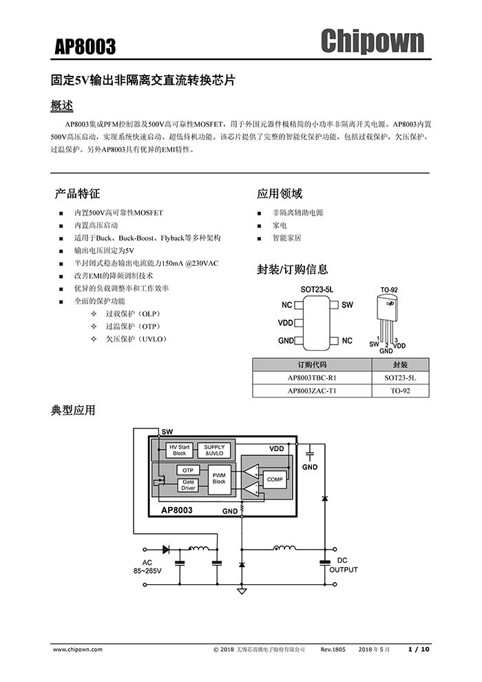八款智能家電電源芯片及方案